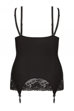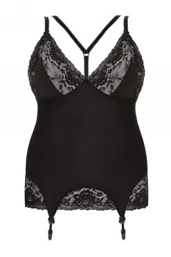 La mystérieuse nuisette Kiri est pourvue de jarretelles pour vous assurer un look parfaitement maîtrisé. Elle est conçue dans un tissu finement brillant et opaque qui préservera le corps un peu plus. Son décolleté est généreusement ouvert grâce à des bonnets arrondis. Des parcelles de dentelle donneront une touche d’innocence tandis que les bretelles qui se glissent au centre du buste intensifieront votre allure. Elles sont réglables et amovibles à souhait.