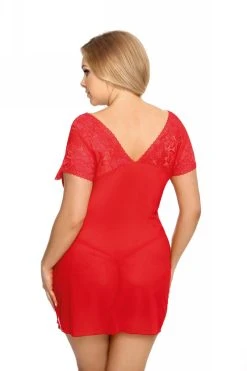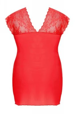 Révélez vous au grand jour avec ce morceau de charge qu’est la nuisette Sydney. Sa couleur rouge vif est parfaite pour se faire remarquer tout en valorisant son corps. Une coupe simple et efficace qui fait toujours son effet ; un décolleté en V à l’avant pour mettre la poitrine et valeur et le même que l’on retrouve dans le dos. Cette partie haute est joliment décorée d’un motif à fleurs tandis que le reste de la nuisette est plutôt opaque et uni. Matière légère et peu moulante ; le string ficelle rouge est inclus.