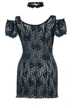 La nuisette Elsa est entièrement faite de dentelle florale finement transparente laissant ses motifs s’imprimer sur la peau. La haut du corps est dégagé tandis que la poitrine est enveloppée pour offrir un look emboitant. Les épaules sont habillées par un jeu de bretelles très glamour et élégant. Le tour de cou est inclus. La nuisette Elsa existe en rouge.