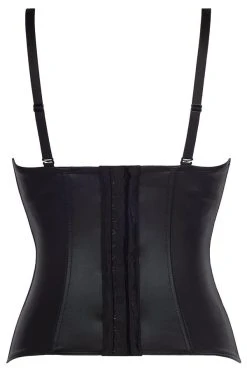 Ses bretelles amovibles et réglables permettent de porter ce délicieux corset façon bustier. On retrouve la rangée d’agrafes dans le dos qui assure une tenue solide. Ajoutez la chaîne et la culotte pantie assortie pour plus de plaisir !