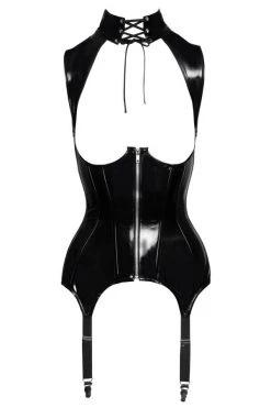 Donnez le meilleur de vous-même avec l’expérience sexy offerte par ce corset. Il est confectionné dans une matière au caractère remarqué qui donnera un coup de fouet à votre look ; son vinyle noir brillant se posera sur les lignes de votre corps comme un charme avant de créer des coupes osées qui joueront à votre avantage.