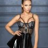 Les armatures verticales affineront la silhouette toujours dans un esprit glamour. C’est une lingerie qui fera toujours son effet, et qui est aussi disponible en noir. Le string assorti est inclus.