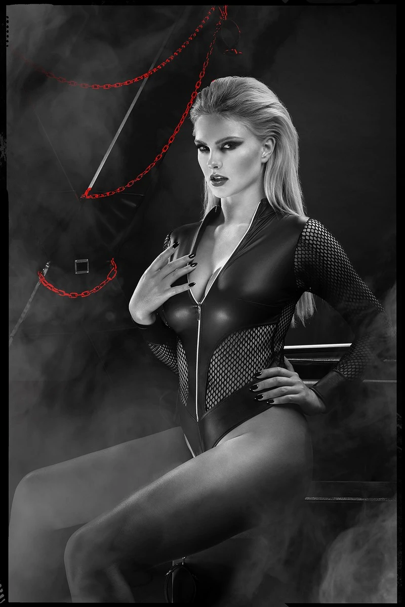 Cette lingerie sexy n’est pas comme les autres, car elle possède des atouts de charme qui vous laisseront la possibilité de jouer à votre guise. La matière wetlook, que vous connaissez déjà, imite l’aspect du cuir en donnant instantanément un air dominant. On a juste ajouté une résille moyenne qui, en plus de dévoiler une partie du corps, donnera un style érotique à l’ensemble.