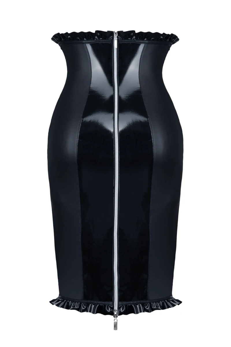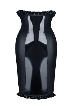 On parle bien de lingerie ici, et la jupe Anja que vous découvrez est assez modifiée pour ne plus être une simple jupe qui passe-partout. Sa coupe osée épousera les courbes du corps ; hanches, taille et fesses seront mises à l’honneur par cette séduisante pièce confectionnée d’un tissu brillant plein d’audace. À l’arrière, une partie est faite dans une résille dont la transparence dévoilera l’anatomie. Fermeture éclair permettant un essayage facilité. Ne tournez pas le dos tout de suite, la surprise en sera d’autant plus alléchante.