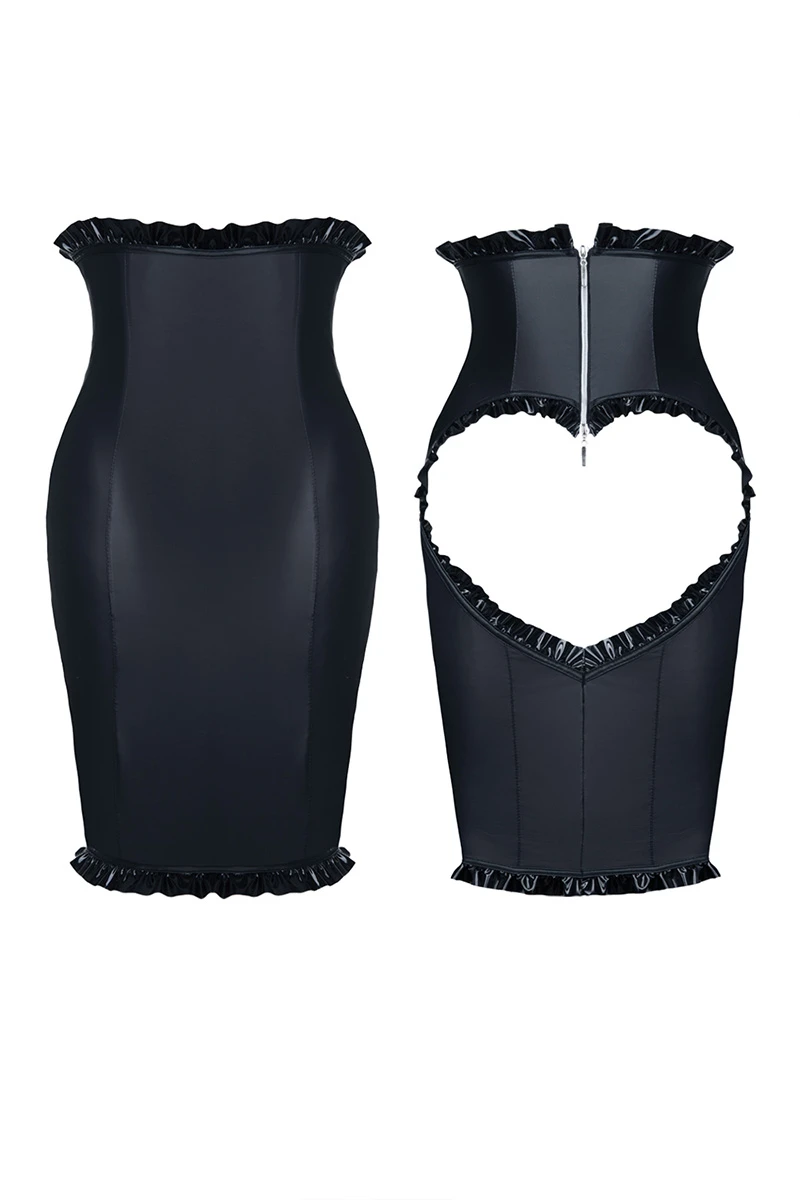 Qu’on se le dise, la jupe Ingrid n’est pas un article de mode habituel. En fait, il s’agit d’une lingerie plutôt sexy, et même plus que cela. Une taille haute qui remonte sous la poitrine afin de rendre les hanches délicieusement galbées et qui soulignent les atouts des femmes. Remarquez l’ouverture en forme de coeur qui découvre les fesses effrontément, c’est une bonne leçon de provocation que vous risquez d’apprécier. Fermeture éclair dans le bas du dos facilitant l’essayage.