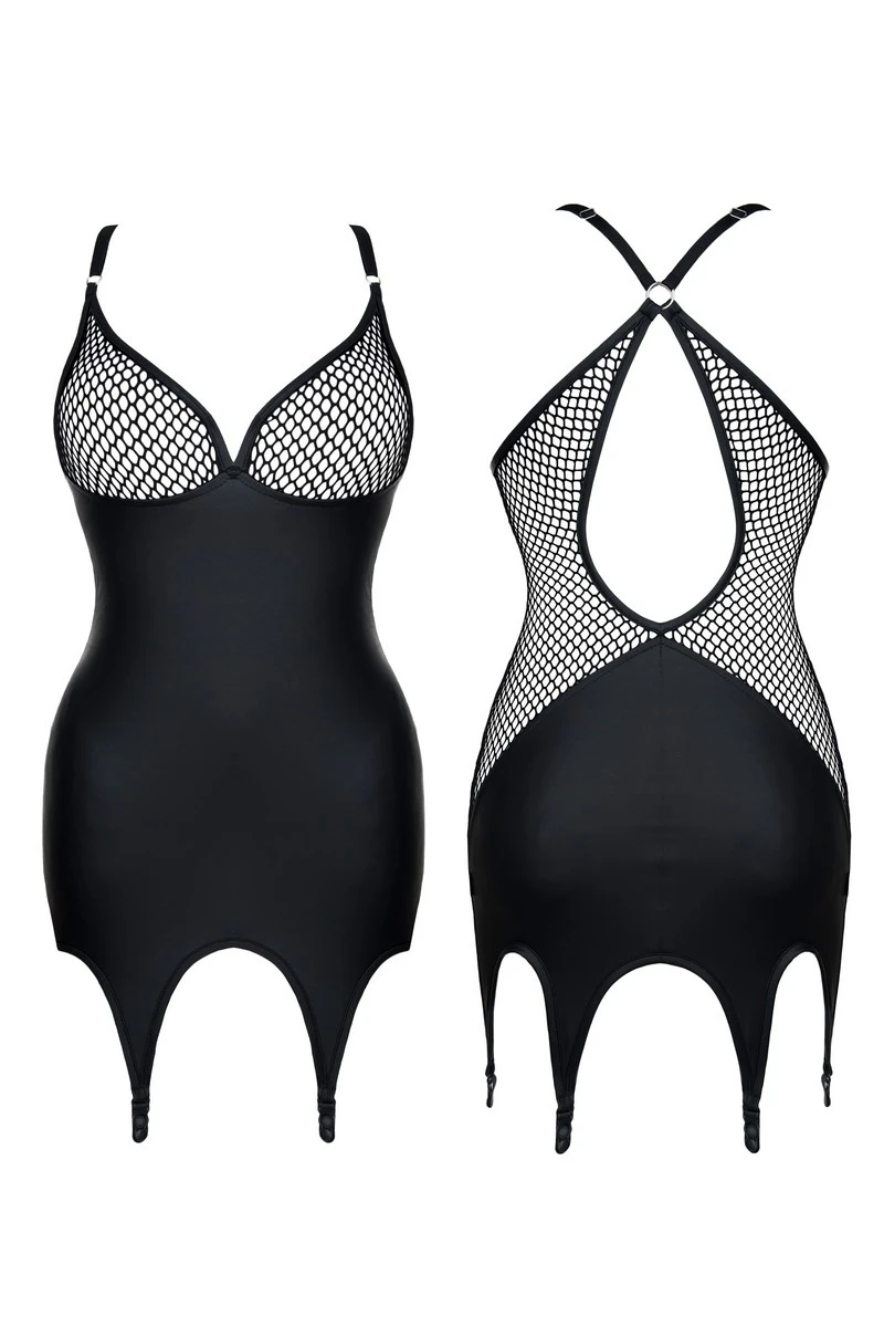L’originale nuisette wetlook DDEris001 ne laisse place à aucun doute sur vos intentions. Sa matière au caractère bien trempé s’étend sur le corps tout en laissant place à une maille recouvrant la poitrine. On profite d’un buste clair et dégagé, en plus du décolleté offert par la coupe des bonnets, pour admirer des formes exquises.