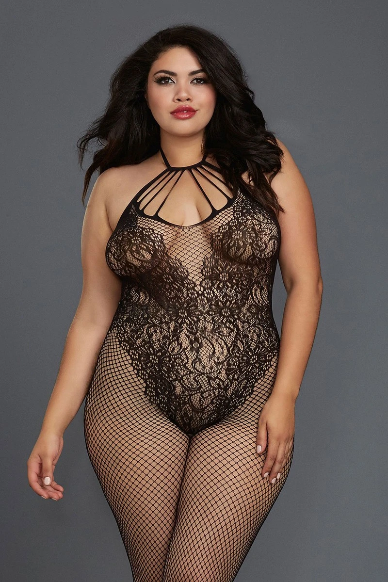 Osez la combinaison grande taille 326 pour être récompensée instantanément par votre nouvelle apparence de séduction. Vous serez plus légère et arborerez une multitude de détails féminins comme cette ribambelle de fleurs sur le haut du corps. La résille noire accorde une transparence limite provocante tout en donnant un nouveau grain de peau. Matière parfaitement moulante, ouverte à l’entrejambe.