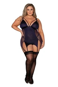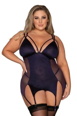 Au centre, c’est une texture opaque faite de micro-fibre qui viendra occulter le centre, avant de rejoindre les jarretelles et les bretelles sont réglables pour un ajustement au plus près du corps. Ajoutez la paire de bas noirs qui vous plaît pour parfaire votre ensemble.
