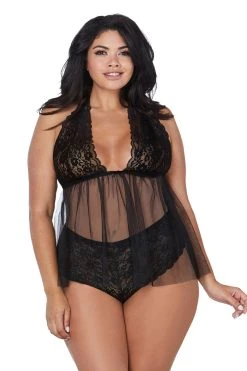 Superbement joueuse, la nuisette décolletée Cheeky est conçue dans un tissu doux et finement extensible pour faire profiter de vos atouts féminins au travers d’une délicieuse transparence. La partie haute est constituée de dentelle noire qui s’ouvre au centre du buste pour créer un décolleté plutôt accueillant. Cette matière permet de créer une certaine opacité qu’on pourra oublier sur le reste de la lingerie.