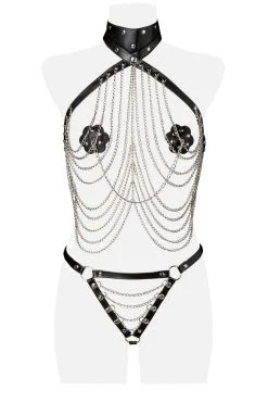 L’ensemble Chain straps ne se prive pas d’imposer un style aussi surprenant qu’audacieux sur le corps. Avec un mélange de chainettes et d’imitation cuir, cette tenue érotique vous donnera une allure de bad-girl qu’il faudra oser.