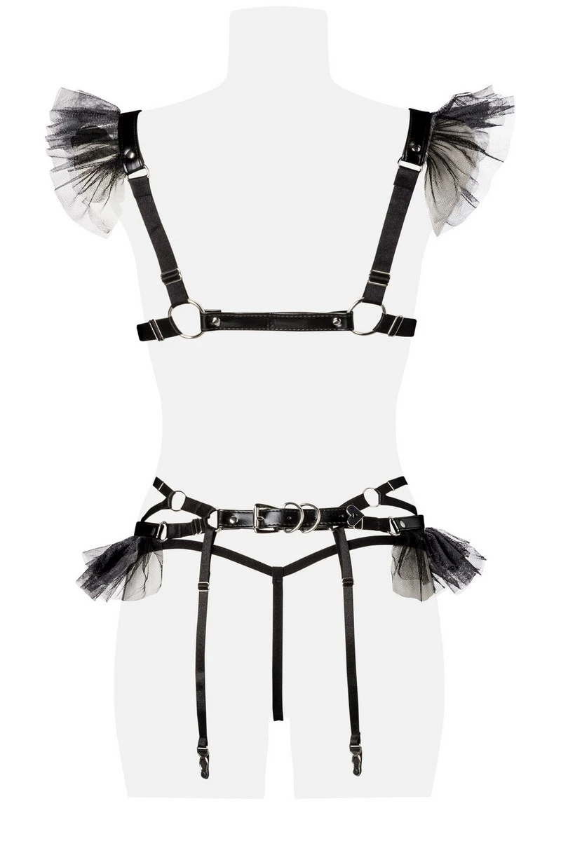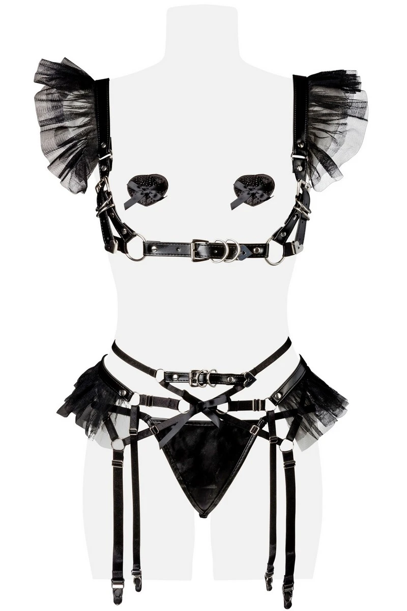 Le porte-jarretelles reprend le même style que le top, avec plus ou moins de détails pour conserver l’apparence bad-girl. Les jarretelles sont réglables en hauteur pour combiner l’ensemble à une paire de bas de votre choix.