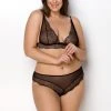 Dominée par un généreux décolleté, la lingerie sexy arbore une dentelle florale très séduisante au niveau du haut du corps. Les bonnets sont souples et soulignés de lignes horizontales et extensibles placées au-dessus du ventre.