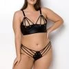 Le soutien-gorge dos nageur est totalement souple et offrira un maintien par l’élasticité des tissus. Le creux de la poitrine est plongeant et orné d’un petit strass brillant. Le string assorti est inclus, ainsi que les liens bracelets en tissus et un masque pour les yeux.
