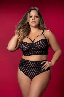 Un brin de provocation et beaucoup de charme pour vous qui porterez l’ensemble bustier Polka. L’ensemble sexy est composé de 2 pièces confectionnées dans un tissu noir moulant, orné de petits ronds de transparence disposés sur l’ensemble de la lingerie.
