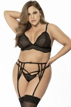 Cette parure de dentelle noire réunit les éléments féminins et romantiques qu’on adore dans une seule et même tenue sexy. Si la lingerie en dentelle noire parfaitement raffinée et sensuelle vous attire, cet assortiment est fait pour vous.