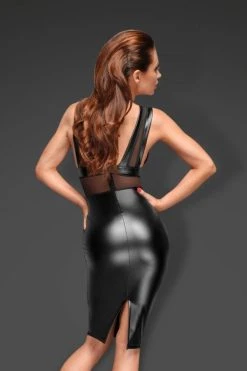 La combinaison dos-nu F249 laquée vient donner un coup de fouet au style des femmes qui aiment se sentir audacieuses et désirables. Grâce à sa matière vinyle effet seconde peau, la combinaison est parfaitement moulante pour suivre chaque courbe du corps sans sourciller.