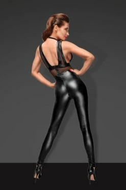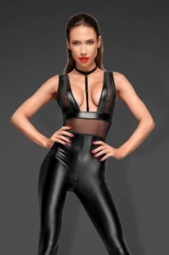 Faite dans une matière proche du corps, la combinaison intégrale Chocker ne demande qu’à épouser vos formes féminines pour y appliquer sa jolie brillance provocante. Cette tenue sexy possède de multiples atouts rien que pour vous, dont ce décolleté dont on ne se lassera de regarder.