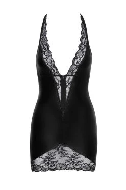 Donnez Ă votre corps la possibilitĂ© de dĂ©voiler ses courbes avec un charme fou. La mini-robe wetlook F283 est faite dans une matiĂšre brillante proche du vinyle accompagnĂ©e d’une dentelle florale, parfaitement fĂ©minine afin de donner de la transparence Ă la tenue.