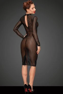 Nul doute sur son efficacité, la robe transparente F182 confectionnée en tulle dévoile et habille le corps à la fois. Vous pourrez profiter de ses rayures verticales pour donner à votre silhouette un peu plus hauteur tandis que le tissu moulera chaque courbe de celle-ci.