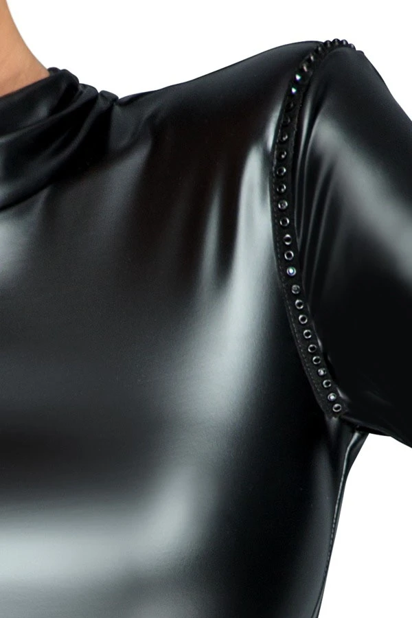 Le buste et la poitrine seront recouverts de cette matière qui se posera sur vous comme une seconde peau. On profite du côté chic offert par un col au raz du cou combiné aux manches longues.