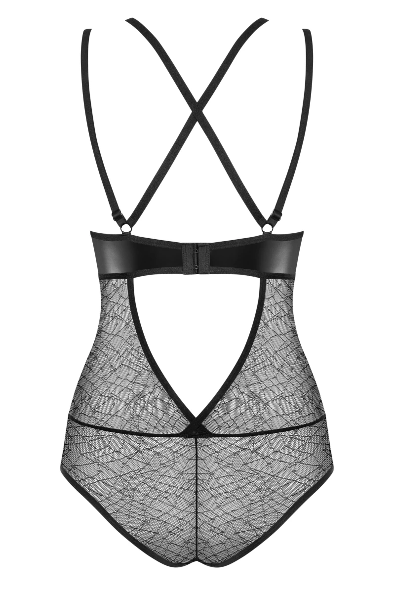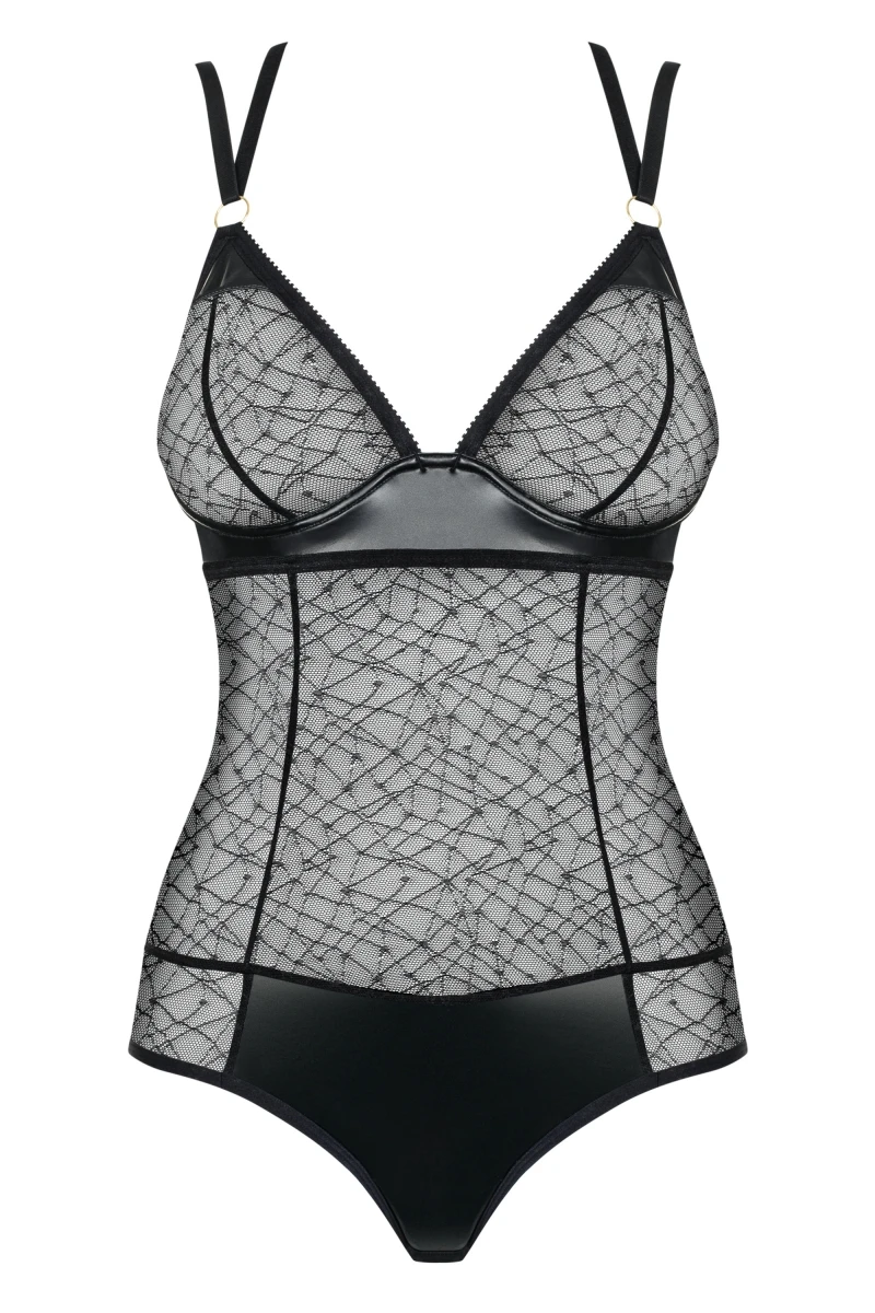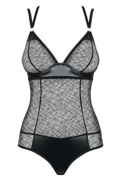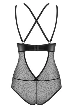 Portez le superbe body 859-TED pour mettre vos courbes en valeur en quelques instants. Vous apprécierez de porter une lingerie séduisante à la hauteur de vos attentes. Son style est créé à partir d’une combinaison alliant tulle transparent et quelques touches de matière wetlook. Le décolleté pigeonnant est fait par la coupe en V des bonnets ; on assure le maintien de la poitrine avec des baleines placées en dessous.