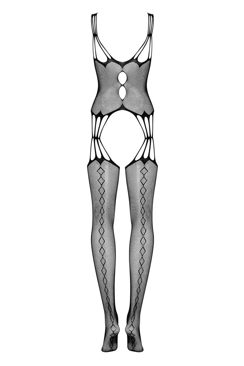 Séduction assurée avec la combinaison grande taille G321 et ses jeux de transparences osés. Laissez les mailles recouvrir votre peau et dévoiler votre corps avec sensualité. La poitrine reste visible tandis que la séparation au niveau des hanches crée comme l’illusion d’une tenue de plusieurs pièces, vous recouvrant de la tête aux pieds.