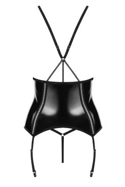 Les bretelles et les jarretelles sont réglables en hauteur, le string ficelle assorti est inclus. Nous vous suggérons d’ajouter les bas Darkie à cette guêpière qui sont proposés ici en option.
