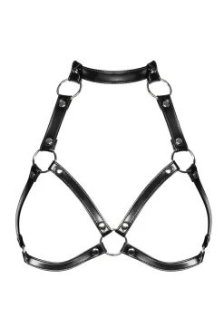 Provocation garantie avec le harnais de poitrine A740. ConfectionnĂ© dans son imitation cuir trĂšs rĂ©ussie, ce “soutien-gorge ouvert” n’en aura pas fini de faire des jalouses (et envieux). La poitrine totalement dĂ©voilĂ©e grĂące Ă des liens retenus entre eux par des anneaux mĂ©talliques surmontĂ©s de rivets argentĂ©s.