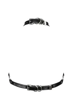 La lingerie est maintenue par un tour de cou, non sans rappeler son univers de domination, qui est réglable par un style de ceinture tout comme la partie passant sous la poitrine.
