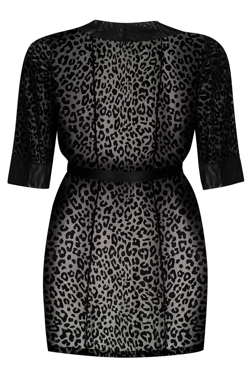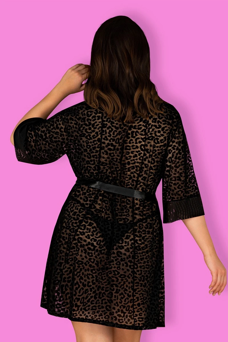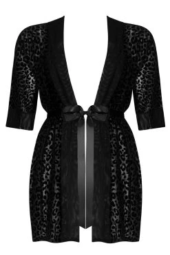 Dans la peau d’un félin, le négligé noir Jagueria valorisera toute votre féminité. Cette lingerie sexy est conçue pour affirmer votre charme aux yeux du monde, et se porte sans complexe. C’est pourquoi la transparence domine ; on remarque l’imprimé léopard totalement noir, directement posé sur votre peau.