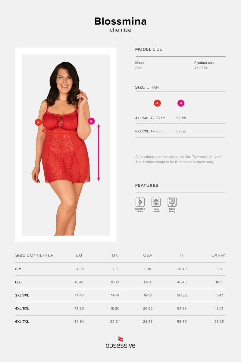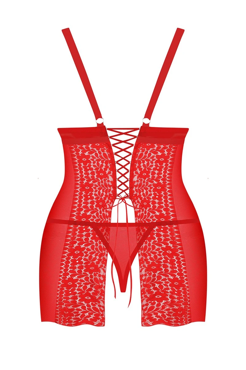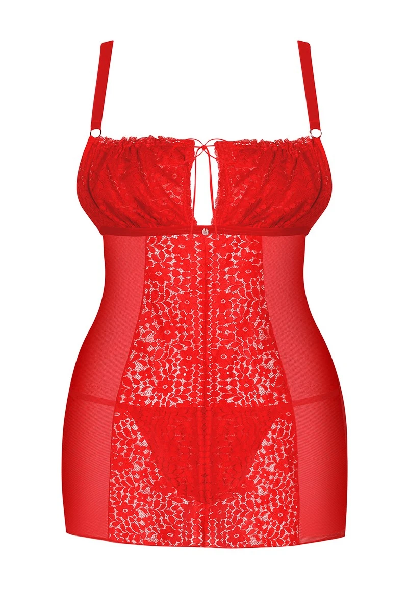 Petite douceur très agréable à regarder, la nuisette Blossmina et sa couleur rouge passion seront au service de vos moindres désirs. Sa coupe est adaptée à toutes les poitrines grâce à des bonnets souples qui peuvent être resserrés par un petit noeud placé au centre du buste.
