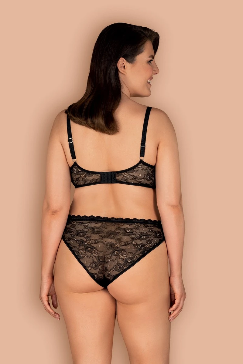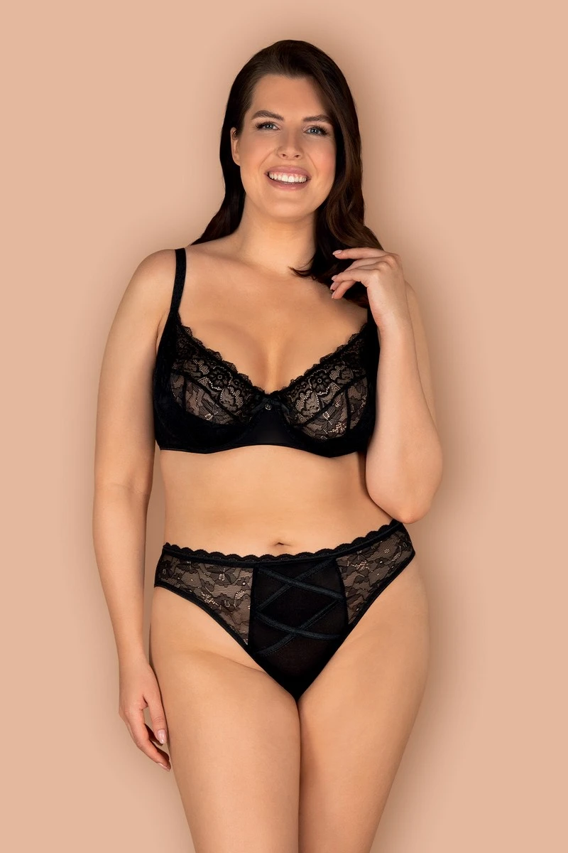 Deux-pièces de charme dédié aux femmes pulpeuses, la parure grande taille Laurise s’habille d’une séduisante dentelle florale qui viendra valoriser les courbes féminines très simplement. Le haut de soutien-gorge est doté d’armatures pour assurer le maintien des poitrines les plus généreuses tout en accentuant le pouvoir de votre décolleté, qui est joliment ouvert.